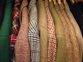 Back in July, I managed to "score" the suit in the above photo from ebay. It's a custom made suit by Alan Flusser, circa mid-90s. I wrote about it shortly after receiving it, using it to illustrate my "Law of Averages" theory as it applies to thrift shopping. It's made of a heavy nailhead cloth, and it's been hanging at the back of the closet in the "on deck circle", awaiting it's trip to the tailor. Every time I take it out to bring it to be fitted, it winds up getting bumped for other pending alterations. The longer I wait, the more I contemplate whether it might not be time to cut my losses on this one.